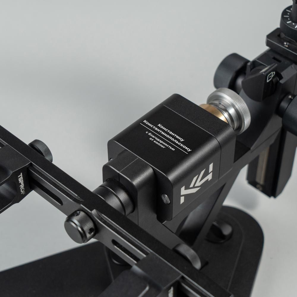 Превратите деталь своего заточного устройства в уникальный авторский акцент внимания и предмет вашего персонального стиля с эксклюзивной лазерной гравировкой! Нанесение рисунка или надписи сверху поворотного механизма TSPROF К4 позволит создать ваш индивидуальный дизайн заточной системы.
