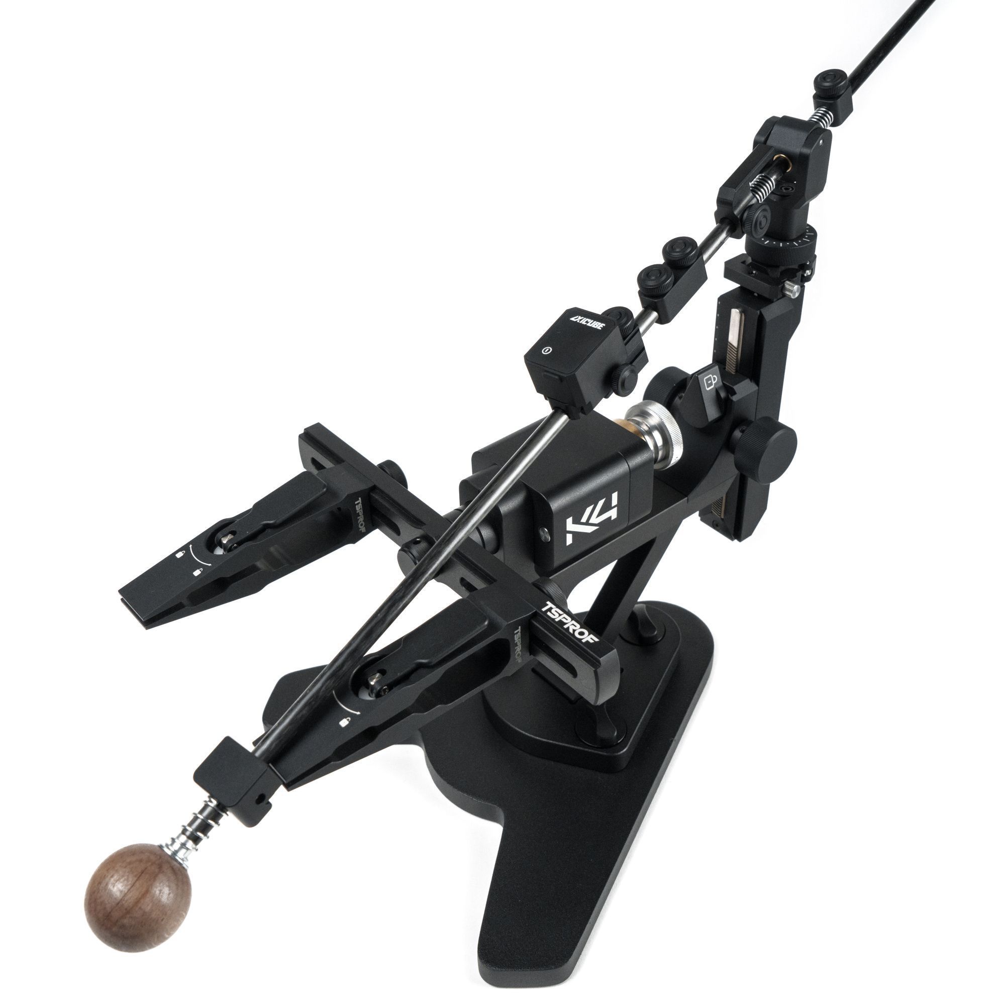 Карбоновая направляющая держателя абразива гораздо легче стальной, при работе с ней ваши руки будут значительно меньше уставать. На одном из концов штанги установлена втулка с резьбой для установки ручки-шара. Гладкий карбоновый шток обеспечивает минимальное трение и плавное скольжение, повышая точность заточки. После взаимной притирки штока и втулки шарнирного узла, вас не будет отвлекать посторонний шум во время работы. Единственный звук, который вы хотите слышать – это звук абразивных зёрен, снимающих металл.