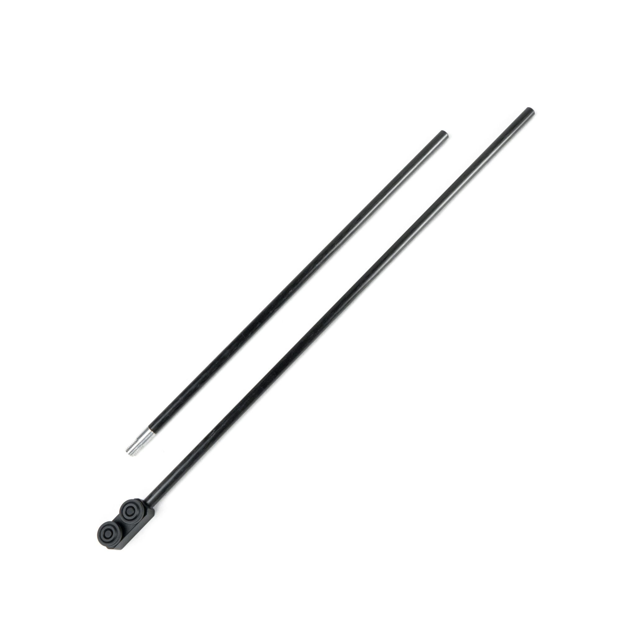 Две части штанги соединяются алюминиевой муфтой в черном матовом анодировании, которая обеспечивает надёжную фиксацию соединяемых частей штанги по площади, через цилиндрические втулки с отверстиями. Концы штанги устанавливаются в боковые отверстия втулки-муфты. Контроль позиционирования осуществляется через отверстие в нижней части корпуса изделия. Гайки при вращении смещают зажимающие втулки вверх, фиксируя концы штанги через несоосность отверстий. Данный способ крепления обеспечивает надёжную фиксацию и неподвижность деталей во время работы.