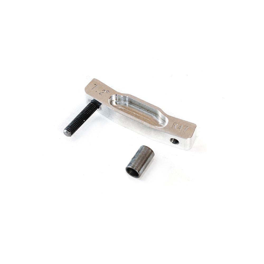 Насадка представлена в виде сменного переходника, который с легкостью монтируются на держатель абразива. Переходник обеспечивает равномерное изменение углов по всей ширине подводов, в результате работ получается радиусная форма линзы. В процессе движения абразива по подводу от линии режущей кромки к обуху ножа, диапазон углов меняется в направлении уменьшения угла. Насадку 7,2 градуса необходимо применять при толщине сведения ножа от 0,4 до 0,6 мм.