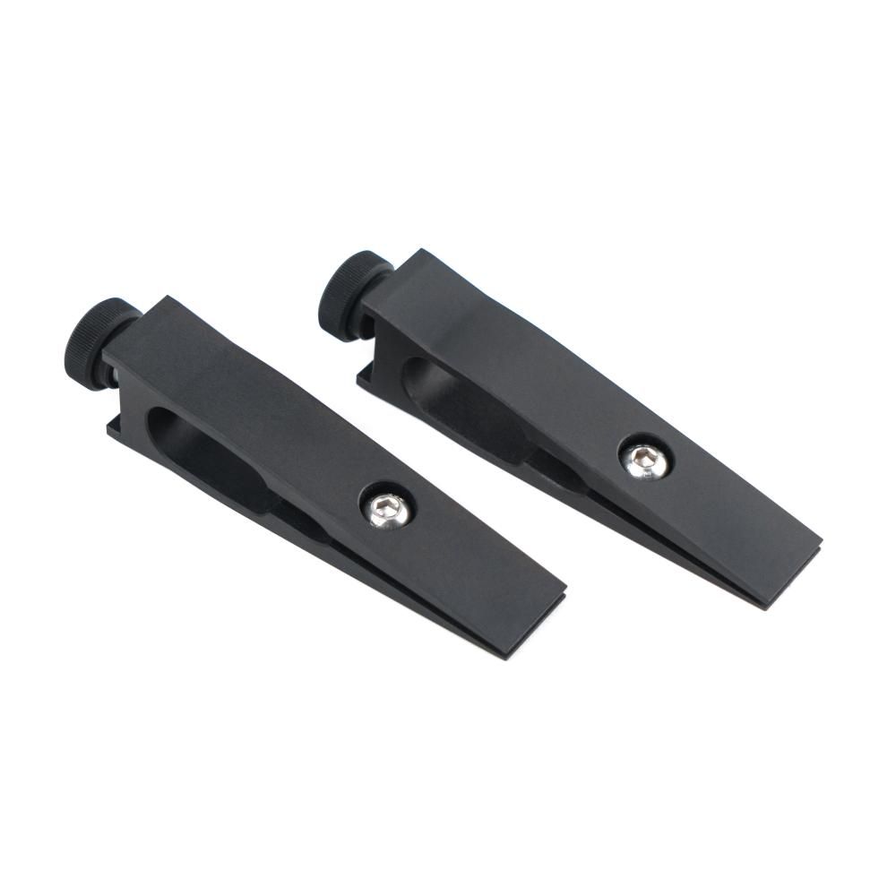 Зажимы изготовлены из цельного куска авиационного алюминия с черным матовым анодированием. Благодаря двум точкам захвата, прогиб лезвия исключен. Есть возможность независимого перемещения зажимов, по всей длине рамки. Отсутствует необходимость калибровки. С этими зажимами становится возможным заточка ножей со «скандинавскими спусками» по линии спусков. Подходят для кухонных и филейных ножей с узким обухом, ножей-брелков, опасных бритв, ножей со «сканди-спусками» и т.п.