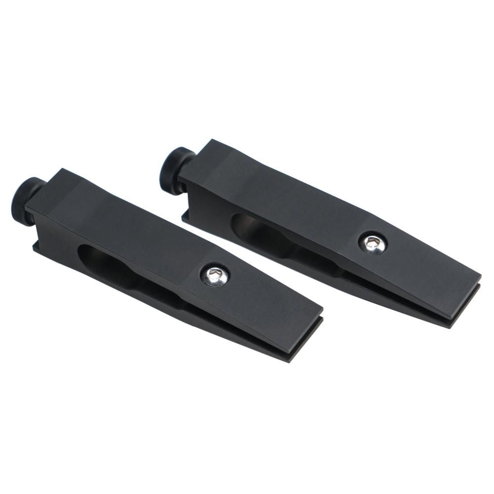 Цельнофрезерованные зажимы, выполнены из высокопрочного авиационного алюминия и покрыты черным матовым анодированием. Предназначены для фиксации ножей с толщиной обуха до 7 мм на заточных устройствах Профиль и TSPROF Kadet, а также TSPROF Pioneer.