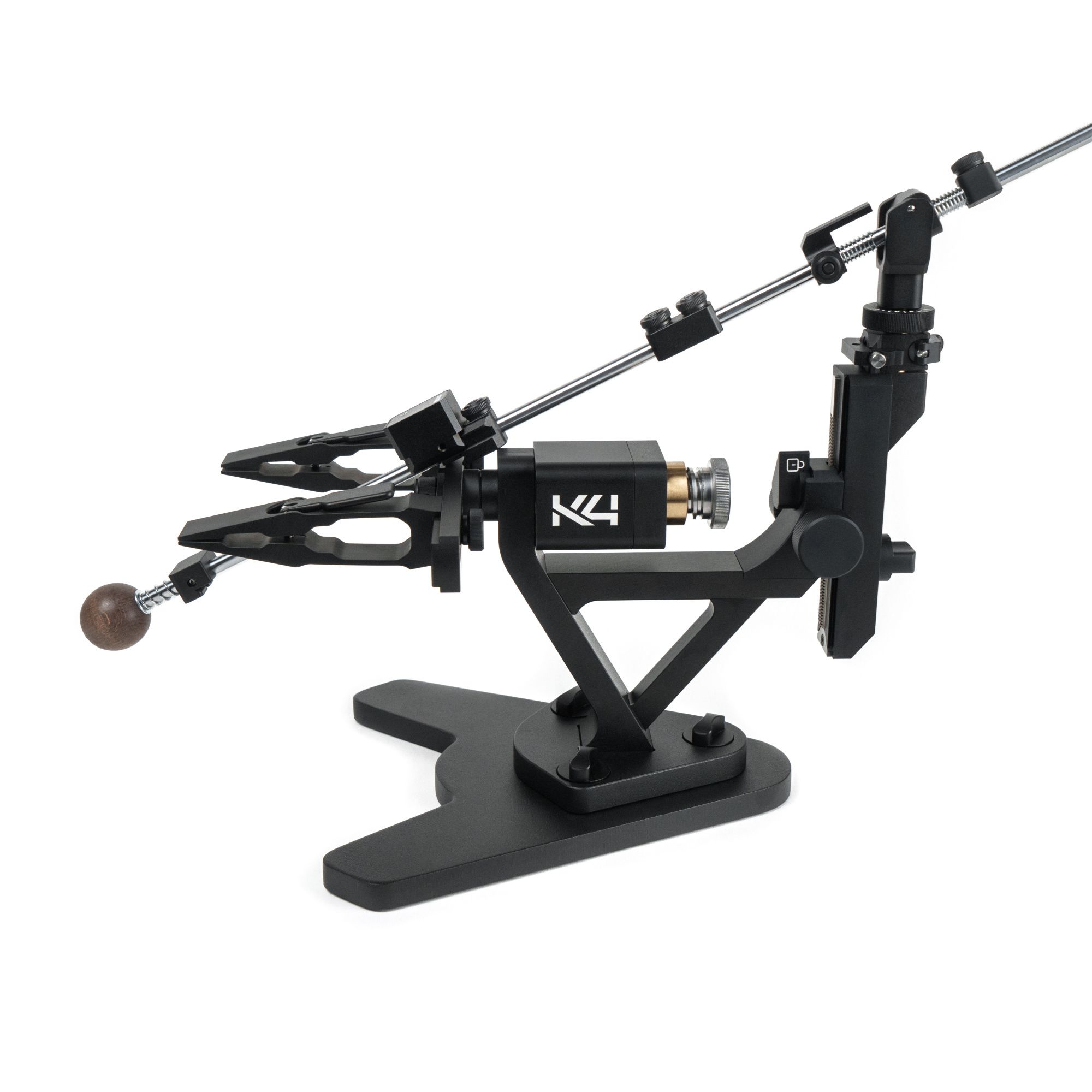 Стойка изделия и основные узлы системы заточки TSPROF K4 выполнены из авиационного алюминия с матовым черным анодированием. Это не просто дань эстетике, а технологичное решение, повышающее долговечность станка. Покрытие защищает металл от коррозии и мелких механических повреждений, не выцветает со временем и устойчиво к воздействию окружающей среды. Тактильно приятная матовая поверхность не требует особого ухода, сохраняя безупречный вид вашего профессионального инструмента на протяжении всего срока службы.Больше возможностей для заточки различных ножей