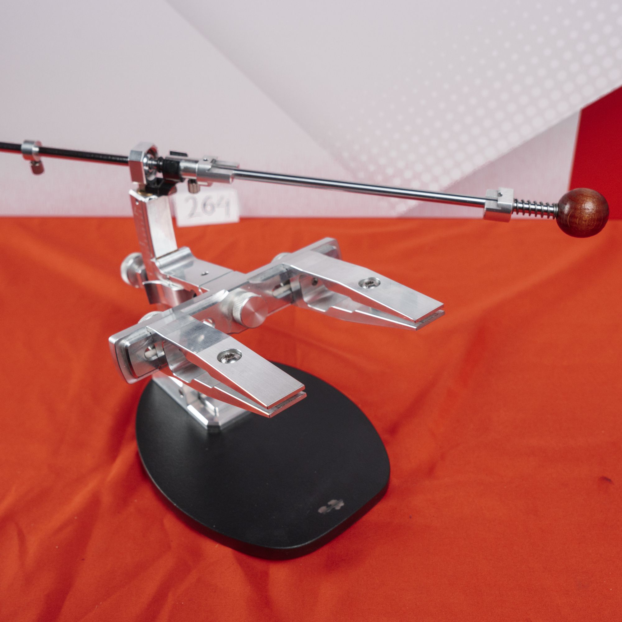 Поворотный механизм точилки ТSРRОF Каdеt Ехреrt поможет сохранить одинаковый угол заточки на обеих сторонах ножа. После переворота рычаг намертво фиксирует рамку с зажимами. Рычаг поворотного механизма можно расположить на удобную сторону, а стойка точилки абсолютно симметрична.