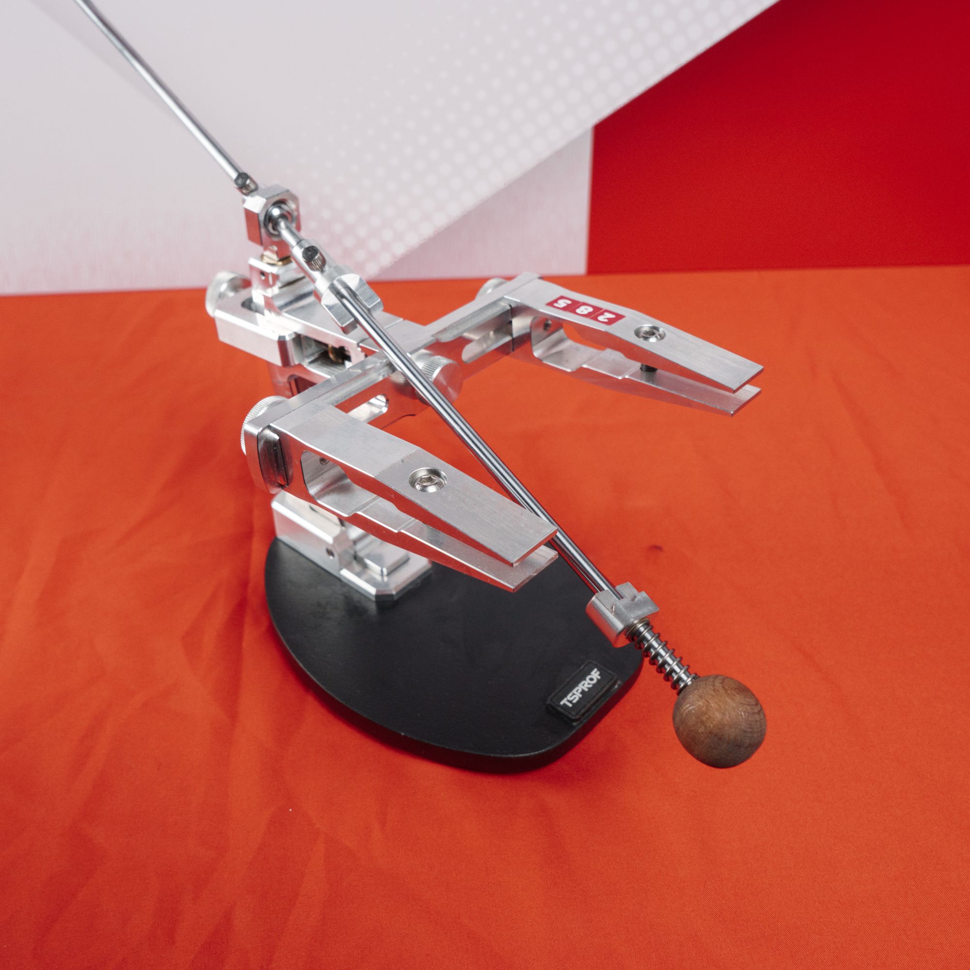 Поворотный механизм точилки ТSРRОF Каdеt Ехреrt поможет сохранить одинаковый угол заточки на обеих сторонах ножа. После переворота рычаг намертво фиксирует рамку с зажимами. Рычаг поворотного механизма можно расположить на удобную сторону, а стойка точилки абсолютно симметрична.