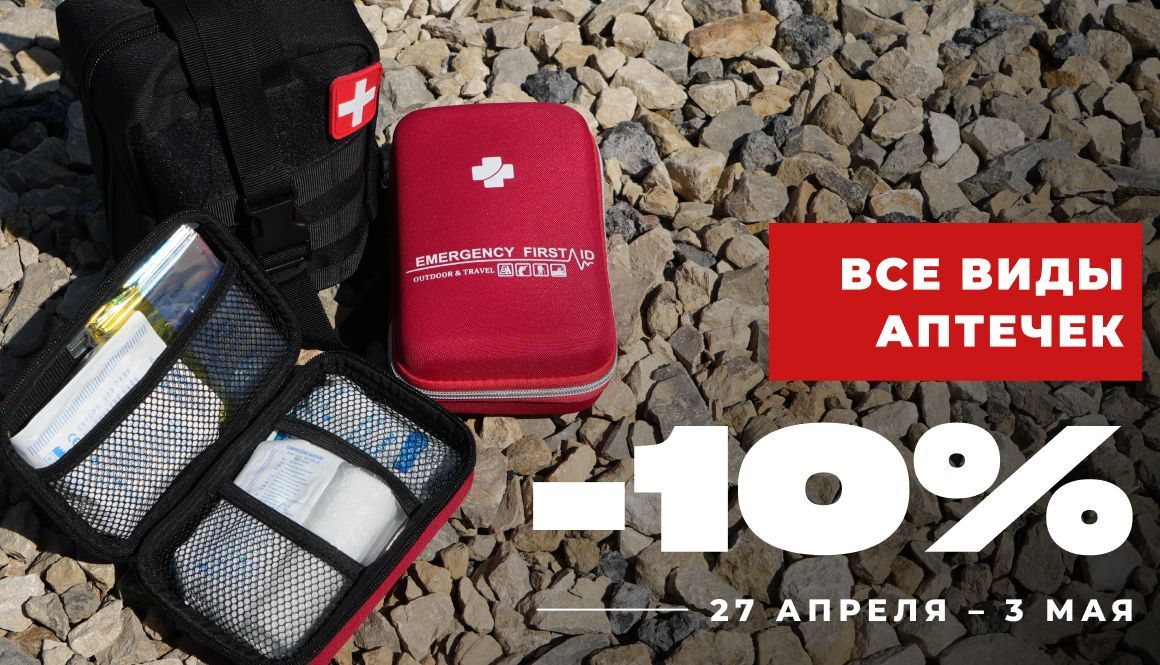 Скидка 10% на все виды аптечек TSPROF — для путешествий, активных выходных и просто безопасных заточек.